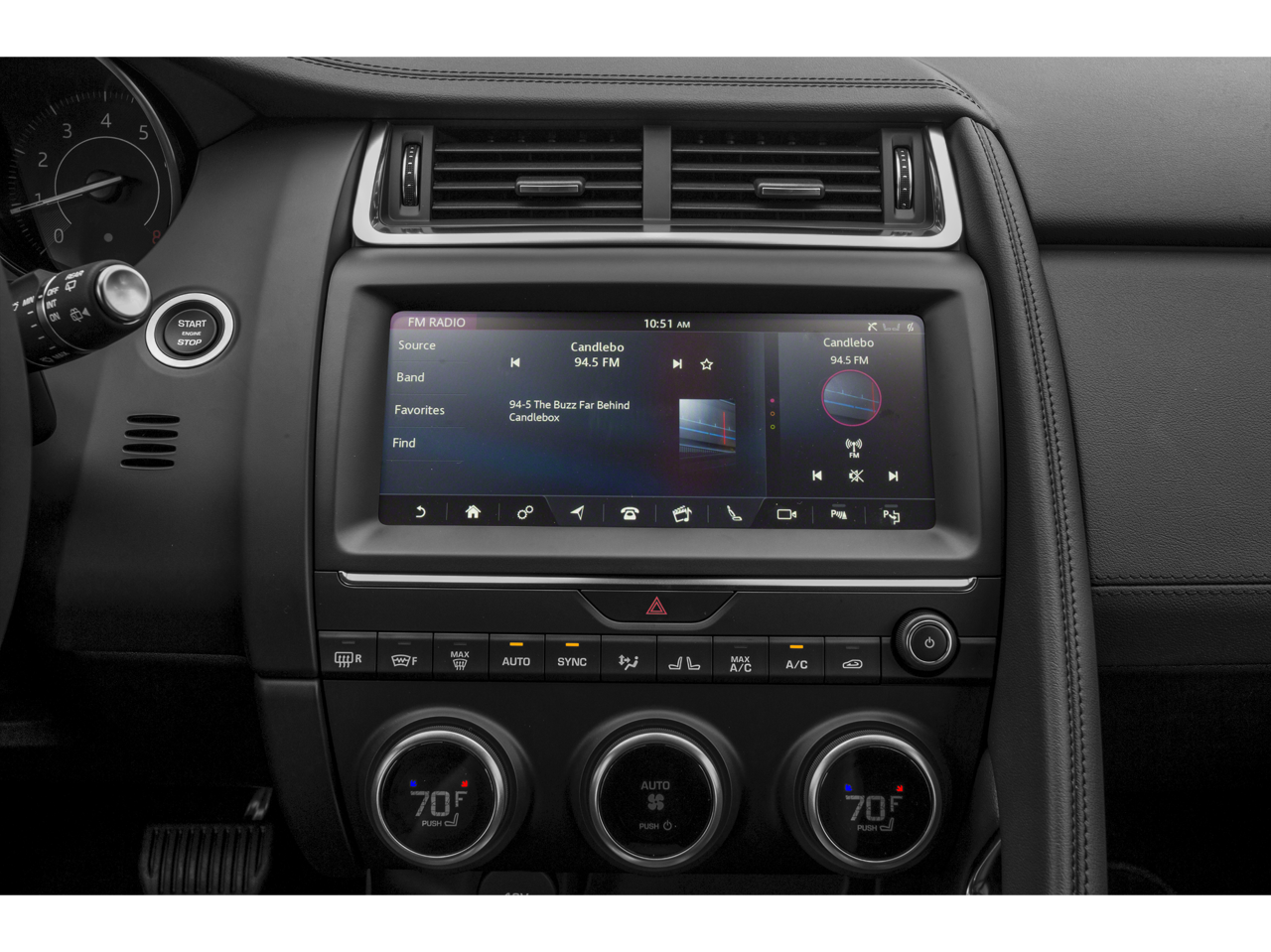 - Radio: Jaguar Sound System -inc: 10" Touch Pro touchscreen, Apple CarPlay, Android Auto, dynamic volume control, voice control and Bluetooth connectivity