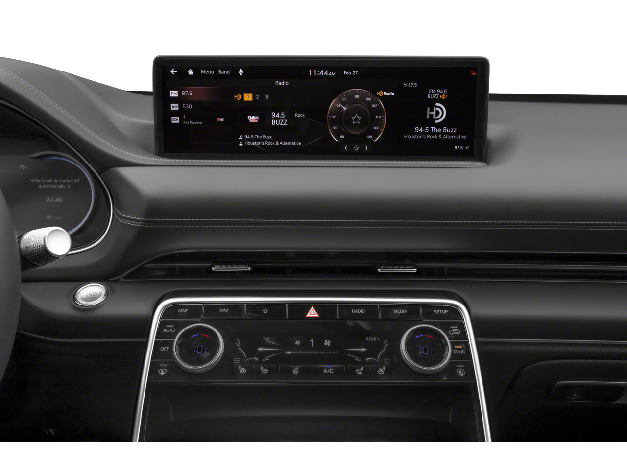- Radio: AM/FM/SiriusXM/HD Audio System -inc: 12 speakers, 6-channel internal amplifier, integrated navigation, 14.5" HD LCD screen, Apple CarPlay and Android Auto, Bluetooth hands-free phone system w/audio streaming, steering wheel controls, USB and Genesis Connected Services